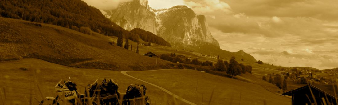 Also alles halb so schlimm. Nach ein paar Tagen war alles repariert und weitere Sachen optimiert. Der Weg ist halt das Ziel! Nebenbei wanderten wir noch rund um den Ifinger und machten ein kleines Meraner Touri - Sightseeing Programm. Das Wetter wurde nun wieder so lala... und dann richtig kalt. Die Schneefallgrenze kam unserem Zelt bedrohlich nahe. So richtig runter vom Berg mit Sack und Pack kamen wir trotzdem erst nach ca. einer Woche. Weiter sollte es nun sofort Richtung Österreich gehen. Naja fast. Vorher verbrachten wir noch eine schöne Übernachtung auf einer Wiese am Fuße des Schlern in Kastelruth.