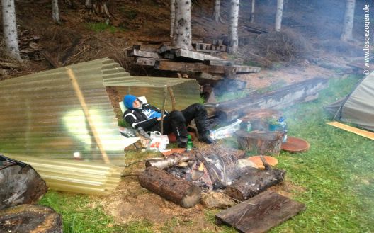 Dort warfen wir gleichzeitig bei einer Pension unnötigen Ballast ab, der im nächsten Urlaub der Eltern mitgenommen werden soll. Schade um den Luxus der elektrischen Zahnbürste... Aber Tim und Lilly müssen leichter werden. Viel zuviel Hüftgold bei den beiden. So wird das nix mit richtig Off-Road. Also nun nur noch kurz über Österreich in Richtung Slowenien, was dann auch wieder länger dauerte.... Wir fanden nämlich einen super abgelegenen Platz in den Wäldern um Greifenburg. Also zwei Tage mit Lagerfeuerromantik und Grillen, aber absofort nun mit Dauerregen inclusive. Ein Lagerfeuertrockenunterstand wurde gebaut. So ging's auch.