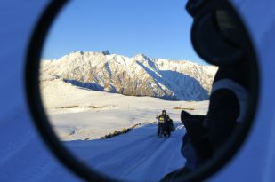 schöne Grüsse aus dem Iran. Huch, was macht denn der Schnee im Rückspiegel? Na also der Winter ist uns wohl anscheinend dicht auf den Fersen…. Hier überqueren wir gerade den über 3200m hohen Salambar Pass neben dem 4850m hohen Alam-Kuh-Gipfel.