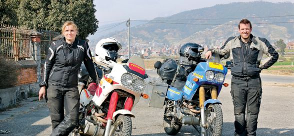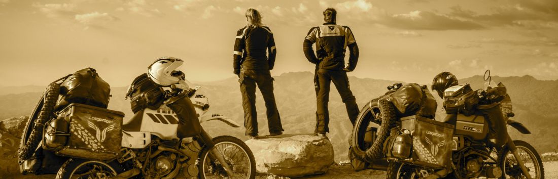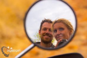 Sobald wir uns jedoch auf der Strecke befanden, waren diese Gedanken wie weggeblasen. Nachdem kiloweise Spaghetti, Reis, Thunfisch und zusätzliche Lebensmittel den Weg in die noch so kleinste freie Ecke in Koffer und Taschen fanden und uns natürlich noch schwerer machten, als wir sowieso schon gewöhnlich waren. Dazu kamen zusätzlich noch 25 l Wasser + 20 l Zusatzbenzin für 2 Personen + Maschinen dazu. Das unser Mopped Duo nicht schon vor Abfahrt die Hufe hochklappten, rechnen wir den beiden wirklich hoch an.