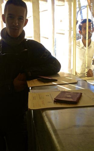 Irgendwann nach einer weiteren halben Stunde und verärgerten Nachfragen kamen Sie nun, nach fast 2 Stunden des Wartens, aus ihrer Burg heraus. Wow! Nun ging es aber richtig in die Vollen! Ein Pick-Up und 6 Knirpse (alle Jünger als wir) samt AK-47 auf der Ladefläche. Endlich zur Grenze, oder? Das sah wirklich so aus und wir rollten wenigstens das erste mal wieder. Ja ihr ahnt es schon. Nicht lange. Der nächste Checkpost an dem wir stoppten war noch in Sichtweite der Station! Hier war ihr Zuständigkeitsbereich nun schon wieder zu Ende. Man glaubt es kaum! "Die sind doch total bescheuert", entfuhr es mir bei all der Ernüchterung. Für 2km Luftlinie haben wir jetzt 2 Stunden gewartet und so langsam stieg Wut in uns auf. Aber schön ruhig bleiben, denn erst mal mussten wir uns, zu unserer Sicherheit, wieder eintragen lassen.