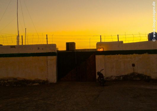 Immerhin waren wir schon aus der Stadt heraus, machten wir uns zu der Zeit noch Mut. Nach der ersten halben Stunde warten, fragte wir kurz nach, wann es denn nun endlich weitergehen würde. "Just for Information", und so. "Sehr bald my Friend!", entgegnete man mir durch die Luke am Tor und schlug sie daraufhin wieder zu. Ich liebe präzise Antworten.