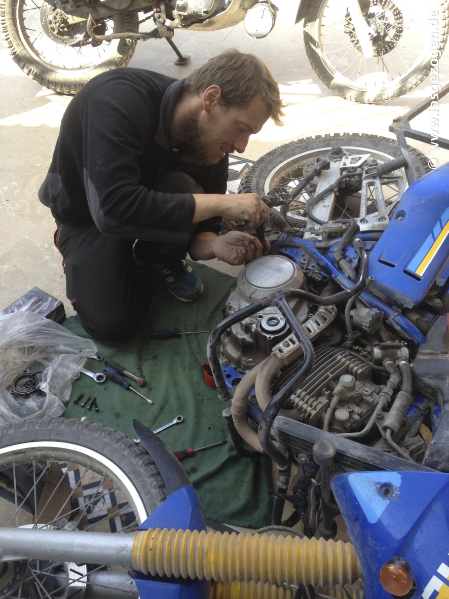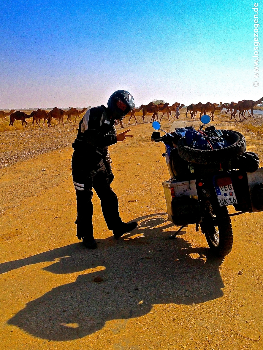 Also musste dieser Mann doch nun einfach über Kampfsportkünste oder zumindest Todesblicke verfügen, feixten wir, wenn er ab jetzt mal ganz locker alleine übernimmt. Wo wenige Meter vorher gerade sechs Männer mit Waffen ausgereicht hatten, so war er ab hier als Person ausreichend genug. Was er allerdings noch viel weniger besaß war ein eigenes Fahrzeug. Da waren wir dann doch ein wenig gespannt, wie er auch noch dieses Problem lösen wollte. Unsere Moppeds waren auf jeden Fall, bei seinem verschwitzten tapsigen Anblick, ganz voll und es gab wirklich nicht einen Quadratmillimeter mehr den wir entbehren konnten. -Ehrlich!