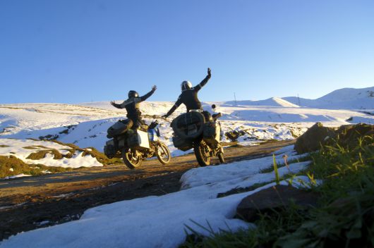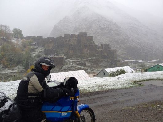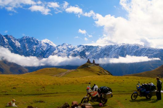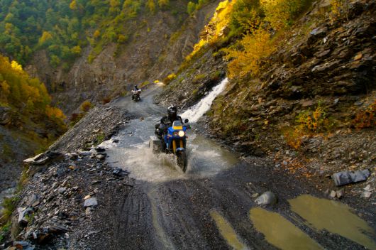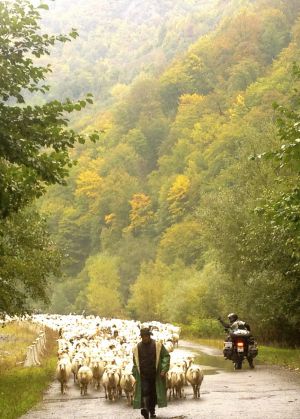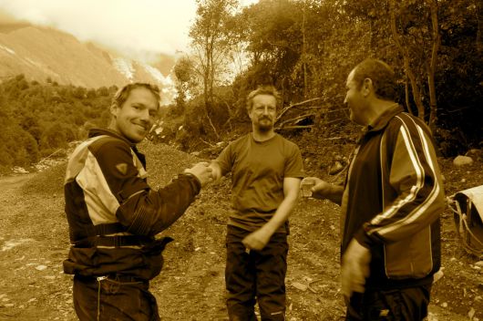 Aber hey,...! trotz aller Widrigkeiten. Man bekommt auch soviel zurück! Die Exklusivität sich in einer Landschaft bewegen zu dürfen und Menschen zu begegnen, die man sonst in der Intensität wohl nur sehr schwierig erreicht hätte, ist wohl nur so gegeben. Georgien war ein "Offroadendurotraum" und wir denken eines der ebenfalls völlig unterschätzten Reiseländer. Eine Gastfreundschaft, besonders auf dem Land, die ich als außerordentlich bezeichnen würde. Oder könnt ihr liebe Mitreisenden schon mal von ähnlichem in Deutschland berichten? Auf der Bergstrecke von Shatili zurück z.B, wurde uns bei einem Bremsbelagwechsel von einem georgischen Jägerduo, die auf Bären- und Wolfsjagd waren, welche in der Nacht wohl über 30 Schafe getötet hatten, unsere Beläge förmlich aus den Händen gerissen und einer von ihnen warf sich in den Matsch unter die Maschine und kam unserem begonnenen selbständigen Wechsel zuvor. Er erklärte lapidar "er sei vom Fach", plauderte noch kurz mit uns, zeigte uns sein Dragunow Scharfschützengewehr und setzte sich wieder in seinen Wagen und zog von dannen. Häh? Na bitte schön! Wir hatten eh schon genug repariert in den letzten Tagen. Wofür bräuchte es in Georgien eigentlich einen ADAC? Beispiele solcher Art könnte ich von den vier Wochen noch mehrere geben. Der Report ist jedoch eh schon zu lang, aber das musste nun einfach mal gesagt werden. So etwas schon mal in "Good Old Germany" erlebt!?