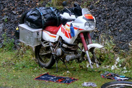 In der hier zum Schluss nur noch kurz zusammengefassten Strecke erlebten wir noch so einige kleine Abenteuer und Anekdötchen, die aber wohl eher "buchformatkompatibel" sind. Daher nur noch kurz. Es gibt trotz allem immer etwas zu feiern. Wir sind nun mehr als 10.000km unterwegs!!! Vieles davon auf sehr schlechten Straßen. Ich glaube das es vom Materialverschleiss eher einigen 10.000 „Deutschlandkilometern“ entspricht. Der Verschleiss besonders auf so einer Offroadtour ist schon sehr, sehr viel größer als auf normalem Asphalt. Zwischendurch sprang mehrfach Lillys Kette über und auch öfters mal ab. In der Schlammschlacht war der Verschleiß wohl mangels Schmierung und qualitativ minderwertiger Kette, übernommen vom Motorradvorgänger, an ihre Grenze gelangt. Demzufolge längte sie sich über die Strecke zusehends. Zudem waren am hinteren Kettenblatt, auf Grund des „Überspringens“ schon kariöse Zähne zu entdecken. Bei Tims hochwertigerer „DID Gold“ Kette war dies nicht zu erkennen. Tims Tank wurde an einer Stelle, durch das Gerappel, mehrfach undicht, was wohl auch an einer zu stramm sitzenden Verkleidung an den Aufnahmen direkt am Tank lag. Außerdem haben wohl nicht nur die XT-Treiber selber manchmal eine Schraube locker, sondern auch anscheinend ihre Gäule. Somit kann man wohl auch unsere Reise anhand einer permanenten Schrauben- und Unterlegscheibenspur verfolgen, die wir wohl hinter uns her ziehen. (-: Gut wenn wir noch eine große Schrauben-Tüte unser eigen nennen dürfen, die für permanenten Ersatz sorgt. Außerdem darf man nicht vergessen das wir über 20 Jahre alte Maschinen fahren. Sie sind zwar genau für so einen Einsatzzweck konzipiert, aber halt auch wartungsbedürftig. Die selbstgewählten diversen Modifikation zeigen natürlich auch erst nach einiger Zeit mehr oder weniger ihre Praxistauglichkeit.... Wir sind zudem Fahrer und Mechaniker in Personalunion. Unsere Schätzchen haben unter uns noch nie eine offizielle Werkstatt von innen gesehen. Das lässt das Budget hier und besonders nach dem Diebstahl nun wohl eher gar nicht mehr groß zu.