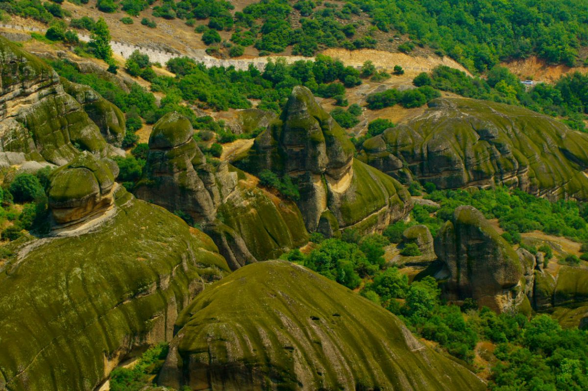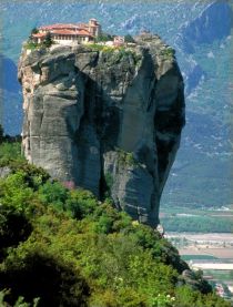 Die weiteren Tage sollten also für die Besichtigung von einzelnen Zielen in Griechenland reserviert sein. Diesmal mit dem Auto zusammen, welch ein Luxus, auf dem Weg zu den Meteora Klöstern bei Kalampaka. Kann man es überhaupt in einem Bericht beschreiben? Natürlich nicht ! Aber ich versuche es trotzdem. Man stelle sich einen riesigen senkrechten Felsen vor und platziere oben ein ganzes Kloster drauf. Die Treppe hinauf sucht man jedoch vergebens, denn sie wurde bewusst weggelassen. Fertig ist das perfekte Zuhause, mit Schutz vor allzu neugierigen Besuchern. Nur wie kamen die armen Mönchen im frühen Mittelalter hinauf ? Sie hatten z.B. einen Flaschenzug mit Handkurbelantrieb oder extrem lange z.T mehrfach verlängerte Leitern, die von Oben hinabgelassen, wurden um rein- und rauszukommen. Vor Ort kann man sich diese garantiert TÜV-freien Zugangsmöglichkeiten anschauen.