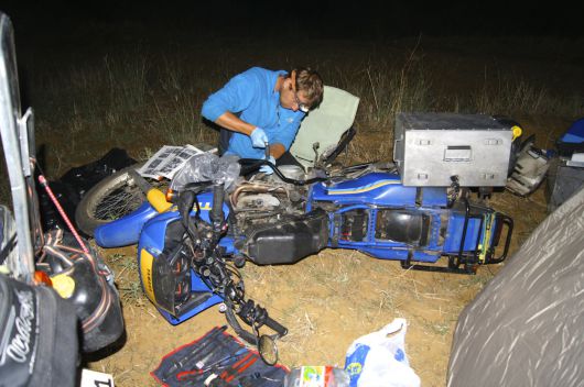Raus war es dann schon eher ein kriechen. Die letzten Kilometer musste sich Tim gar von Lilly schmachvoll durch die Dunkelheit ziehen lassen. Nix ging mehr. Keine Kraftschluss zum Getriebe mehr möglich. Noch in der Nacht wurden, am erstbesten ungestörten Lagerplatz, die völlig verbrauchten Scheiben (wo sind denn bloss die Rillen hin ;-) ???) gegen neue getauscht.