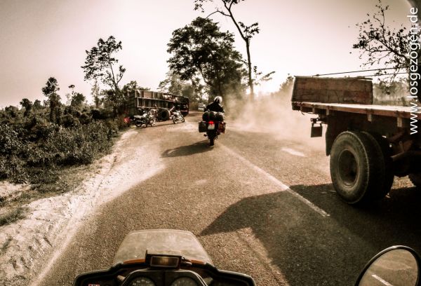 Wenn man in Pakistan schon Angst vor dem Exitus durch Terroristen gehabt hat, dann sollte man aus rein rationalen, lebenserhaltenden Gesichtspunkten schon gar nicht in Indien Teilnehmer am öffentlichen Straßenverkehr werden oder gar auf die Idee kommen sich auch noch selber mit einem Motorrad in diesem Arterhaltungskampf zu stürzen. Das schleuderte ich auch jedem Inder entgegen der uns zu seinem verhassten Nachbarn erklärte: Pakistan sei „a very dangerous country because of Taliban“! Die Chance hier im täglichen Verkehrsüberlebenskampf verschluckt bzw. auf der Strecke zu bleiben ist unserer Meinung ungleich größer. Sicherlich gibt es auch Gegenden ( Ladakh, Goa, Teile von Südindien ) wo es gesitteter zu geht, als z.B. in so einigen Bundesstaaten nördlich von Dehli....