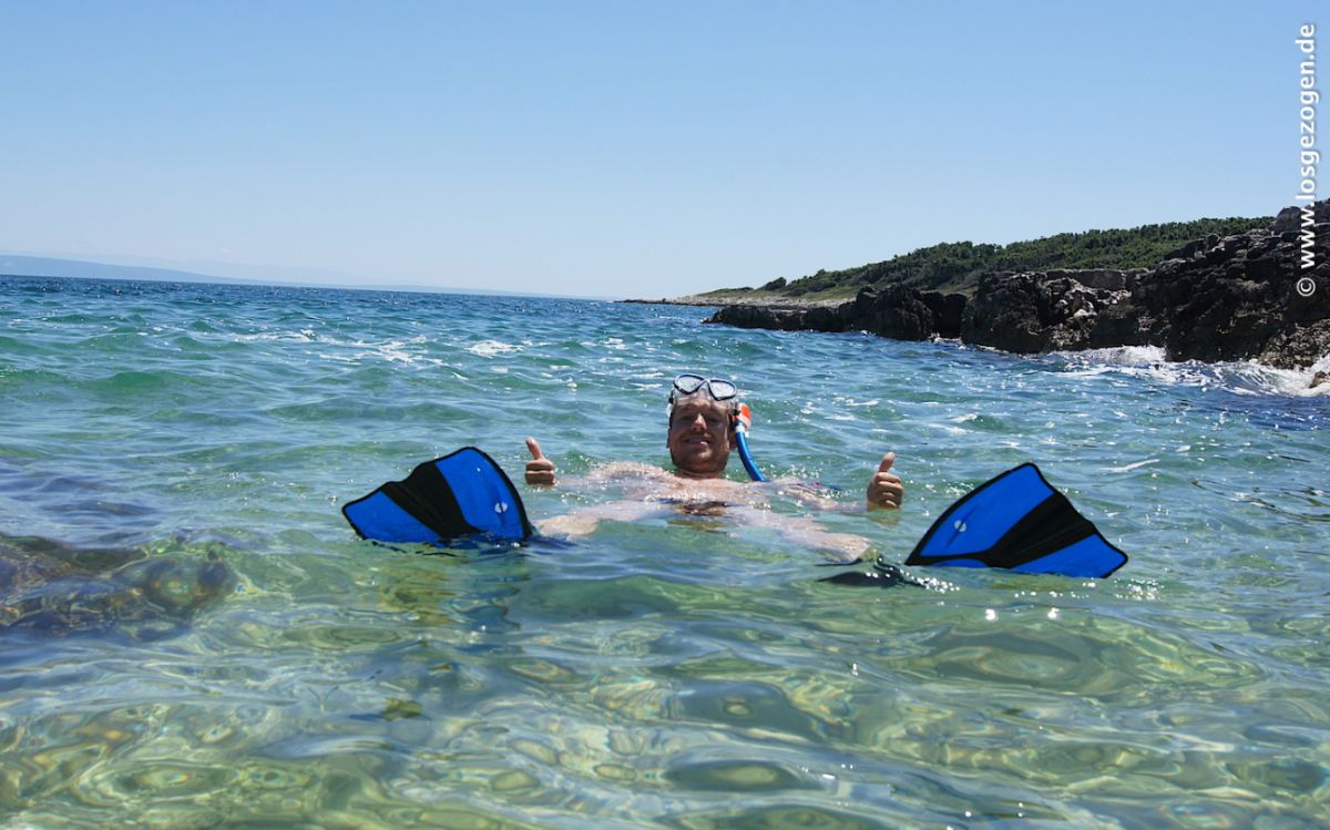 Ab jetzt sind wir auch Unterwasser aktiv. Schnorchelset muss ab sofort auch noch mit.