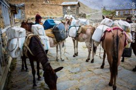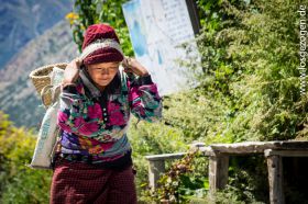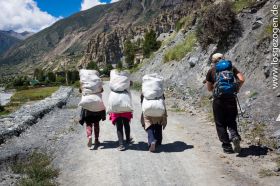 Selbst auf fast 4.000 m gab es noch vereinzelt schattenspendende Bäume oder eine kleine Stupa die zu einer Pause einluden. Die hier lebenden Menschen waren aufgrund der Gegebenheiten gezwungen nahezu alles, wie z.B. Lebensmittel, Baumaterialen und andere benötigte Güter entweder selber zu erstellen oder aber in Gewaltmärschen hinauf zu tragen. Ab hier gab es auch keinen Weg mehr für Fahrzeuge, so dass nur noch Esel, Maultiere oder Menschen als Lastträger dienen konnten.