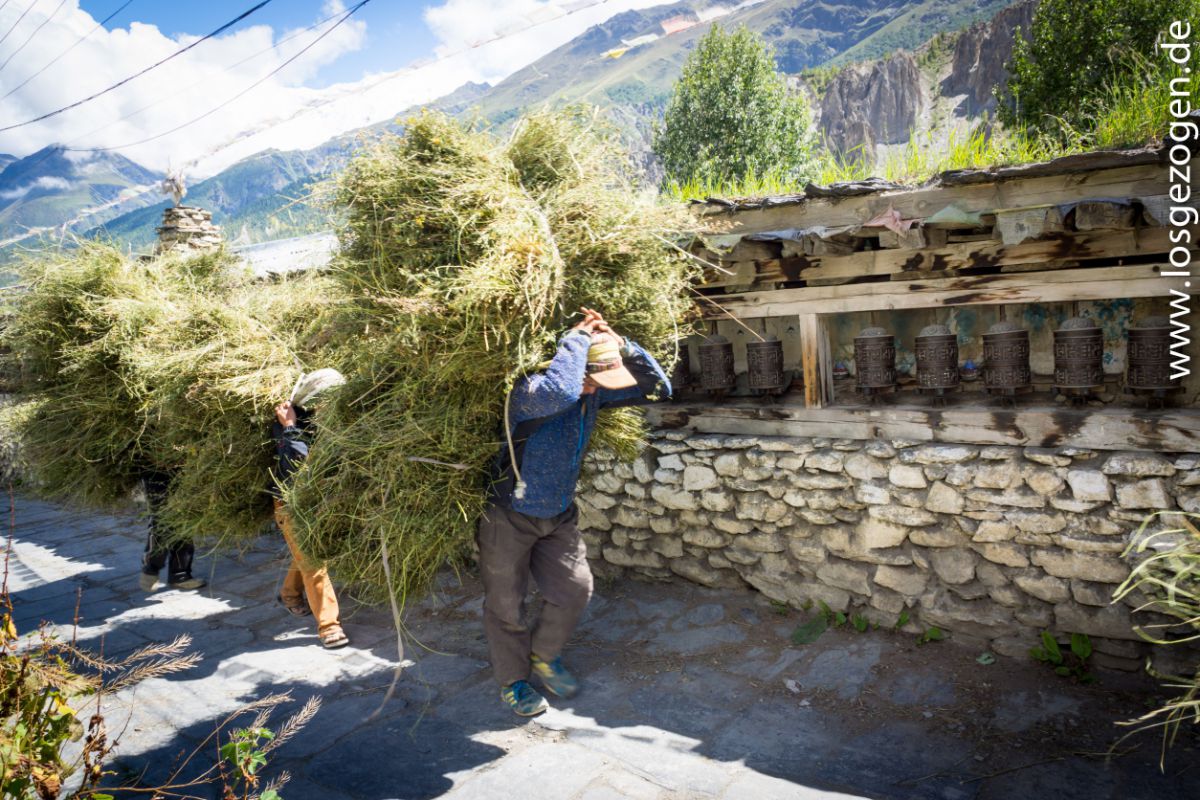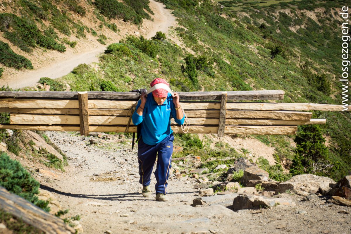 Hier wurde ja schließlich alles auf dem Rücken getragen. Ob lange Holzbalken oder Monierstahl für die Häuser. Bis zu 120 kg laden einige von Ihnen sich auf. Das kann man nicht wirklich glauben, bevor man es nicht selber gesehen hat und einmal selber diese Lasten anhebt.