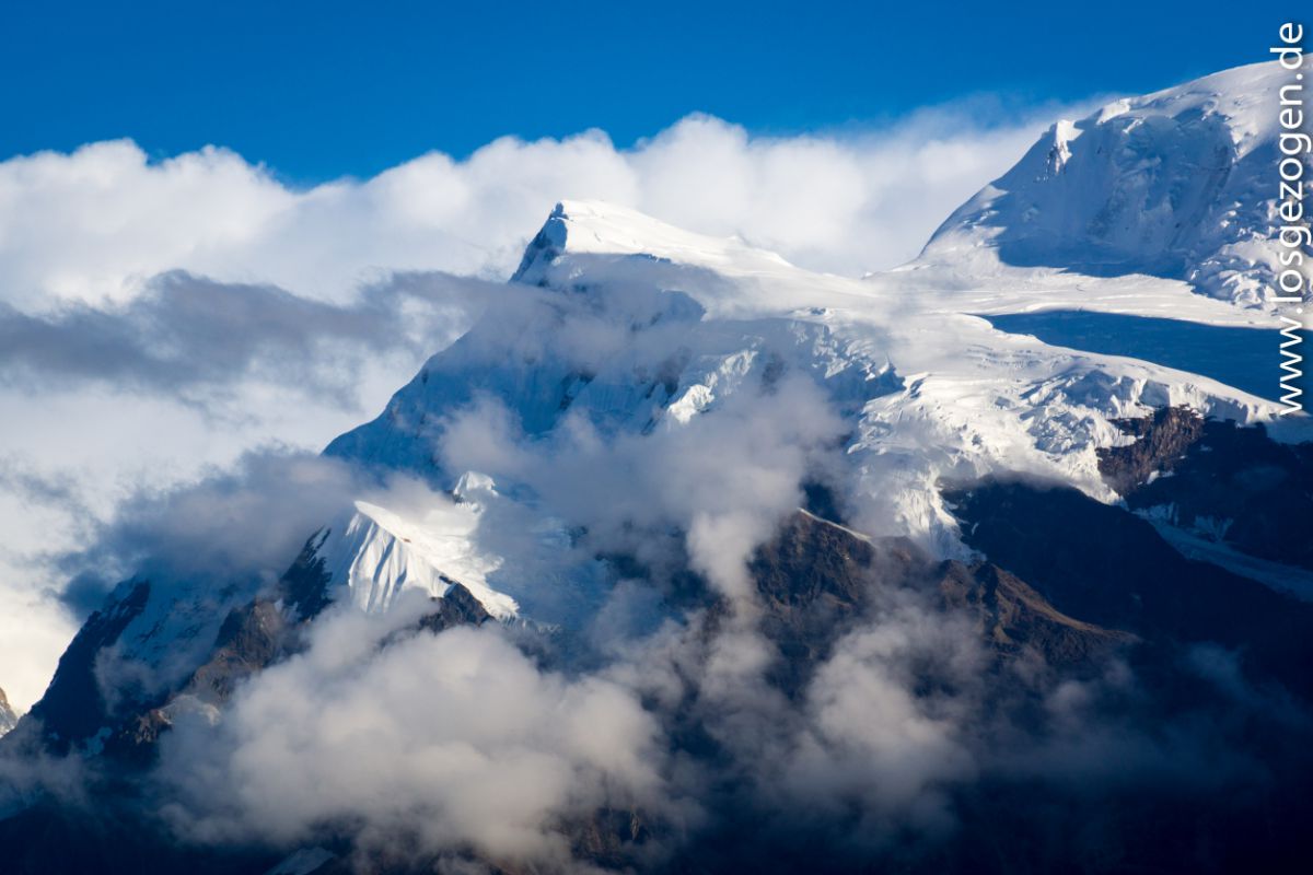 Noch lagen die Wolken im Tal und wir hatten einen atemberaubenden Blick über alle umliegenden Gipfel. Es war ein absolut erhabenes Gefühl. Die gesamte Annapurnagebiet mit ihren Sieben und Achtausender wie z.B. Annarpurna 1 (8.091 m) lagen um uns im Kreis. In solch einem Moment ist man überwältigt, das sich die Anstrengungen gelohnt hatten.