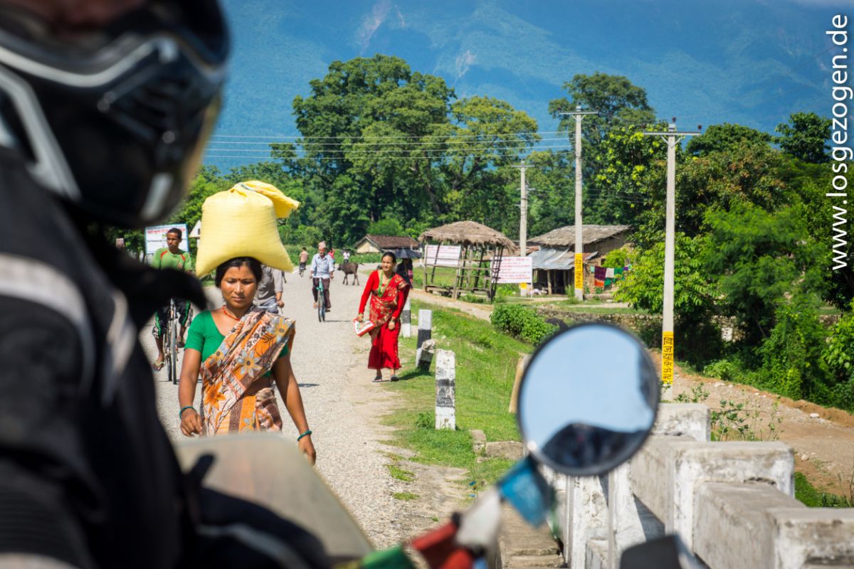 Kurz vor Grenzschließung am späten Nachmittag war die Schnitzeljagd dann doch noch erfolgreich vollendet. Im indischen Grenzdörfchen Banbasa fanden wir tatsächlich die Brücke über den Sarda Fluss, welche uns den Weg nach Nepal/Mahendranagar freigab. Ein Brückenwärter kam von der anderen Seite der Straße gelaufen, um uns die großen Tore zu öffnen. Wir passten halt so gerade nicht mit unseren breiten Koffern durch die Durchgangstür wie der restliche motorisierte Kleinkraftverkehr.