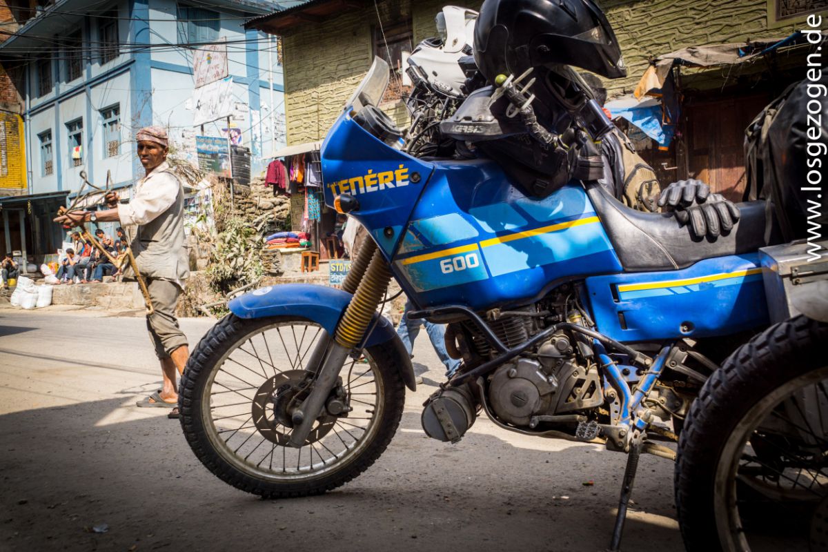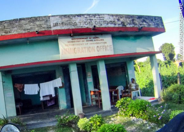 Nach der erfolgreichen Ausreise aus Indien füllten wir dann unsere Grenzdokumente aus, Corinna erklärte den nepalesischen Zollbeamten wo und wie ein Carnet de Passage für die Motorräder überhaupt zu stempeln sei. Der Grenzer schaute dabei zu wie ein kleiner Schuljunge gebannt zu und schien das zum ersten Mal zu machen. Wir waren dagegen nur erleichtert. Endlich begann ein neuer Abschnitt unserer Reise. Das konnte man spüren. Deshalb füllten wir die Dokumente auch sehr gerne, bis auf Ihre Unterschrift natürlich, für Sie selber aus.