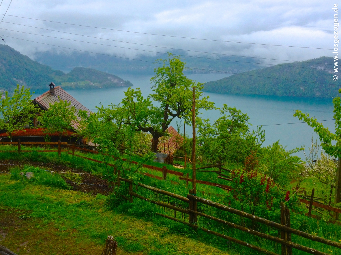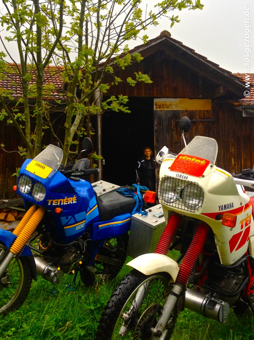 In letzterem kann man übrigens auch ohne Probleme zwei XT's, bei laufenden Motor, auf dem Supermarktparkplatz stehen lassen. Für so einen Haufen Altmetall interessiert sich im Land der Steuerflucht sowieso niemand. Wir haben beide Länder in drei Tagen durchquert und konnten diesmal weniger rasten und verweilen. Denn die Eltern in Italien wollten ja noch besucht werden. Lilly hält trotz löchriger Ansaugstutzen tapfer durch, ein freundlicher Hähnchenwagenverkäufer flog beim Anschieben von Ollis Ténéré (Tim) gleich hinterher und der erste Schlafplatz in einer Scheune auf dieser Reise mit Blick von hoch oben über den Vierwaldstätter See war einfach traumhaft.